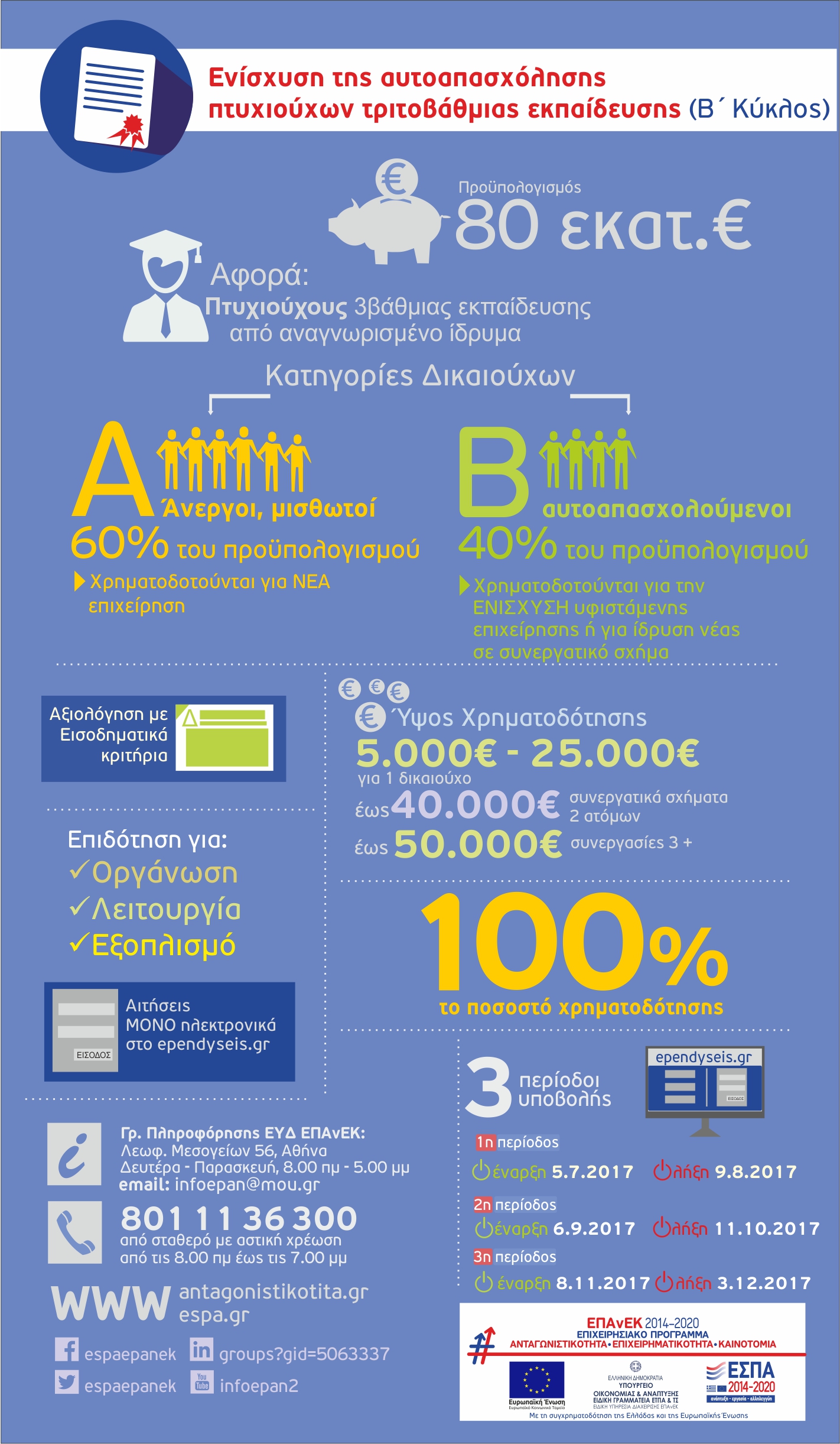| Ενίσχυση της αυτοαπασχόλησης πτυχιούχων τριτοβάθμιας εκπαίδευσης (Β Κύκλος) |
